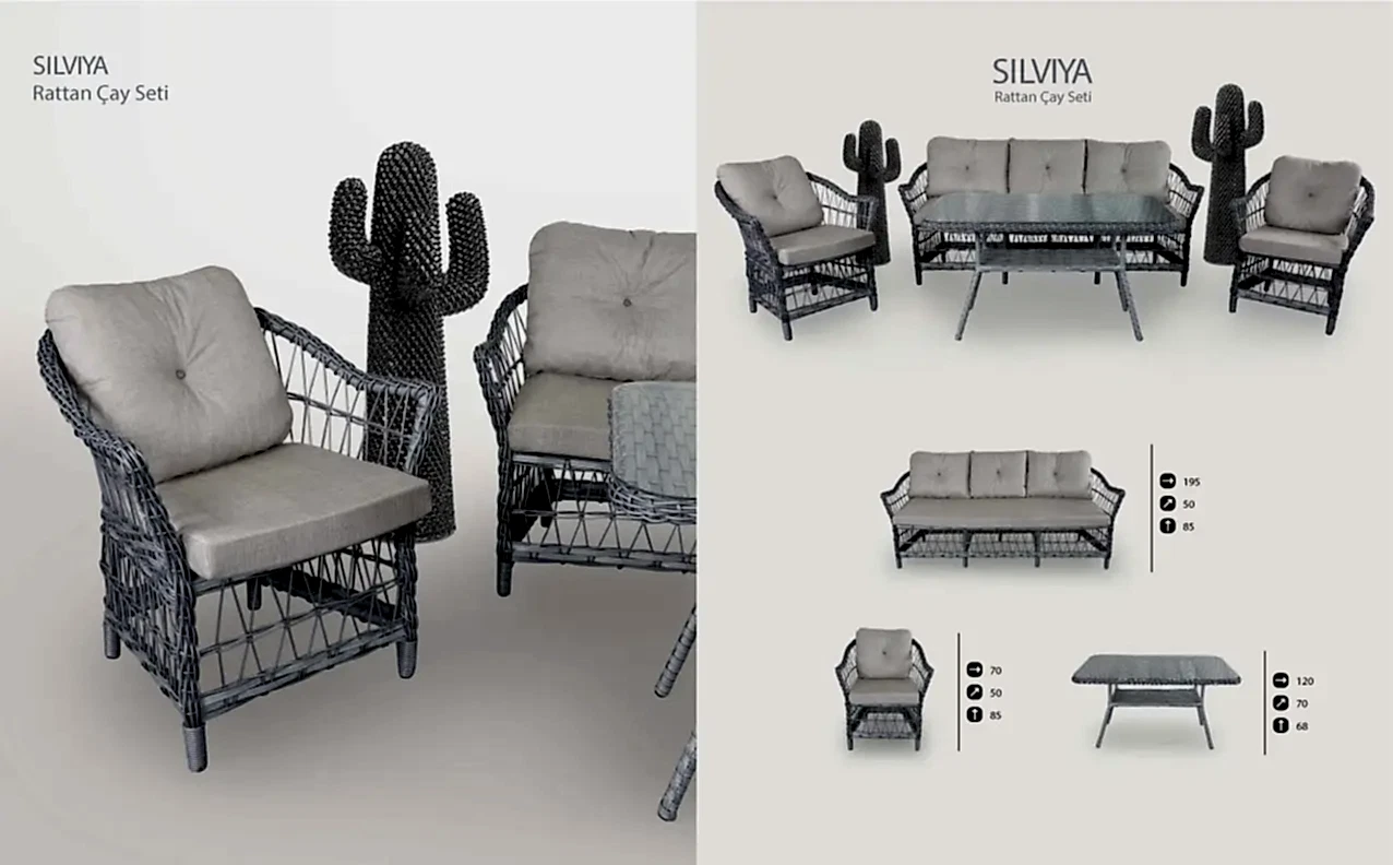 Silviya Rattan Çay Seti