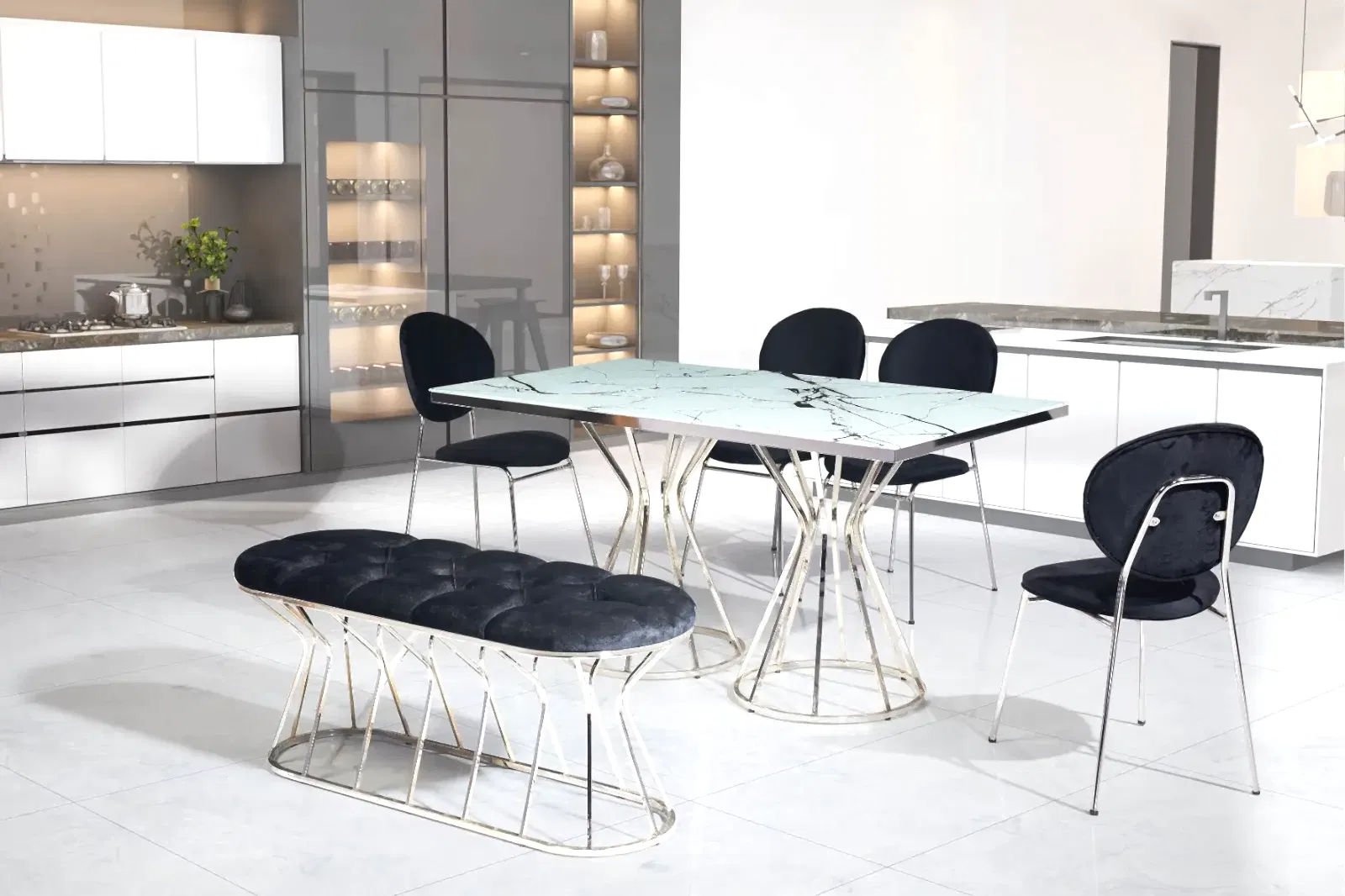 Sofia Krom Mermer Masa Sandalye Takımı